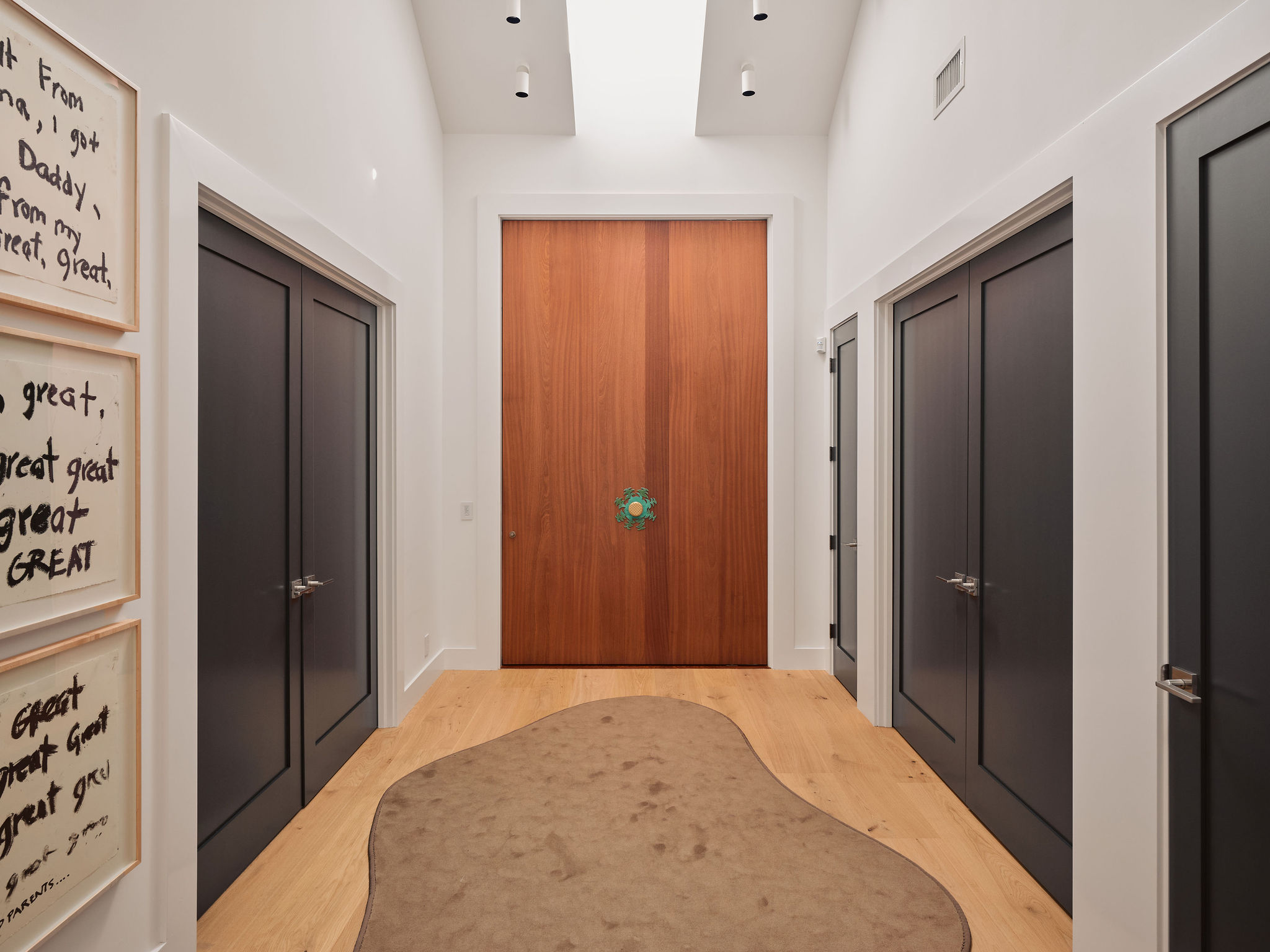 • Inside, you’ll find light-filled living spaces with high ceilings, bespoke millwork and premium materials throughout. The open plan allows for effortless flow between the multiple living, dining, library and kitchen areas.