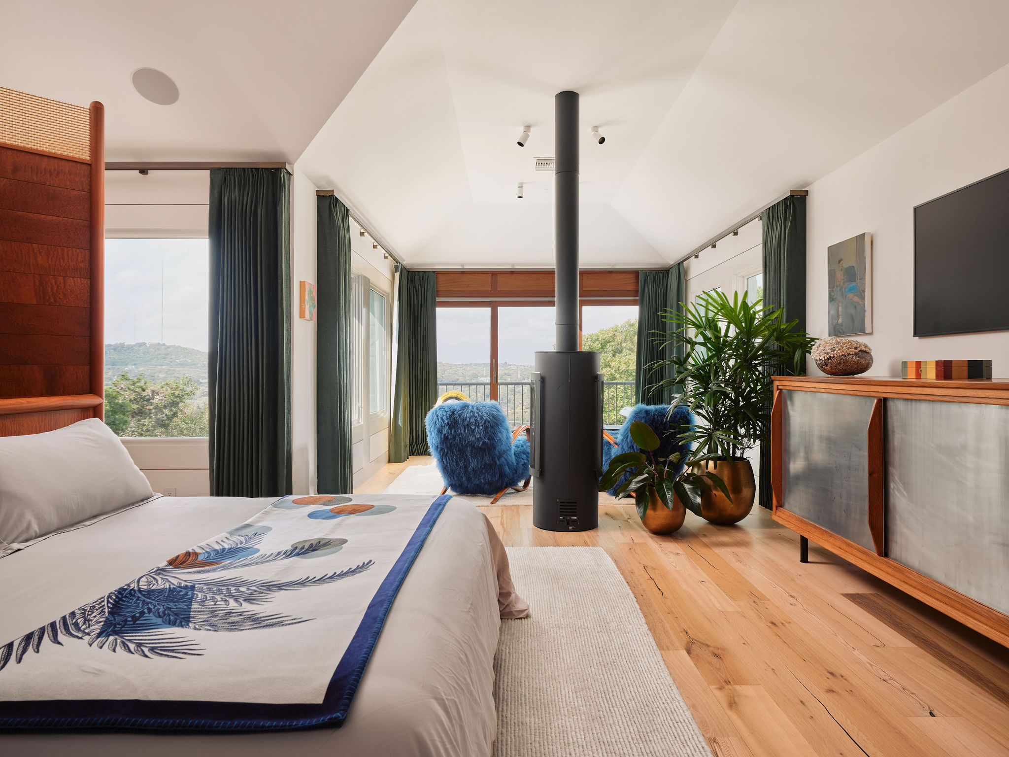 • The primary suite is a serene retreat, offering treetop views, a glimpse of Lake Austin, a spa-inspired bath with elegant dressing room and closet. Additional bedrooms are spacious and well-appointed, offering both comfort and flexibility.